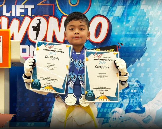 วันจันทร์ที่ 23 กุมภาพันธ์ พ.ศ. 2569 โรงเรียนอนุบาลพนัสศึกษาลัย นำโดย ดร.สำอางค์ สุดสอาด ผู้อำนวยการโรงเรียน มอบเหรียญรางวัล แสดงความยินดีกับ เด็กชายชยณัฐ ทองเพิ่ม นักเรียนชั้นประถมศึกษาปีที่ 2/3 ได้รับรางวัลเหรียญเงิน เคียวรุจิ รุ่น 9–10 ปี น้ำหนัก 23–25 กก. จากการแข่งขันเทควันโดชิงแชมป์พัทยา 2026 เมื่อวันเสาร์ที่ 21 กุมภาพันธ์ พ.ศ. 2569 ณ โลตัสพัทยาเหนือ